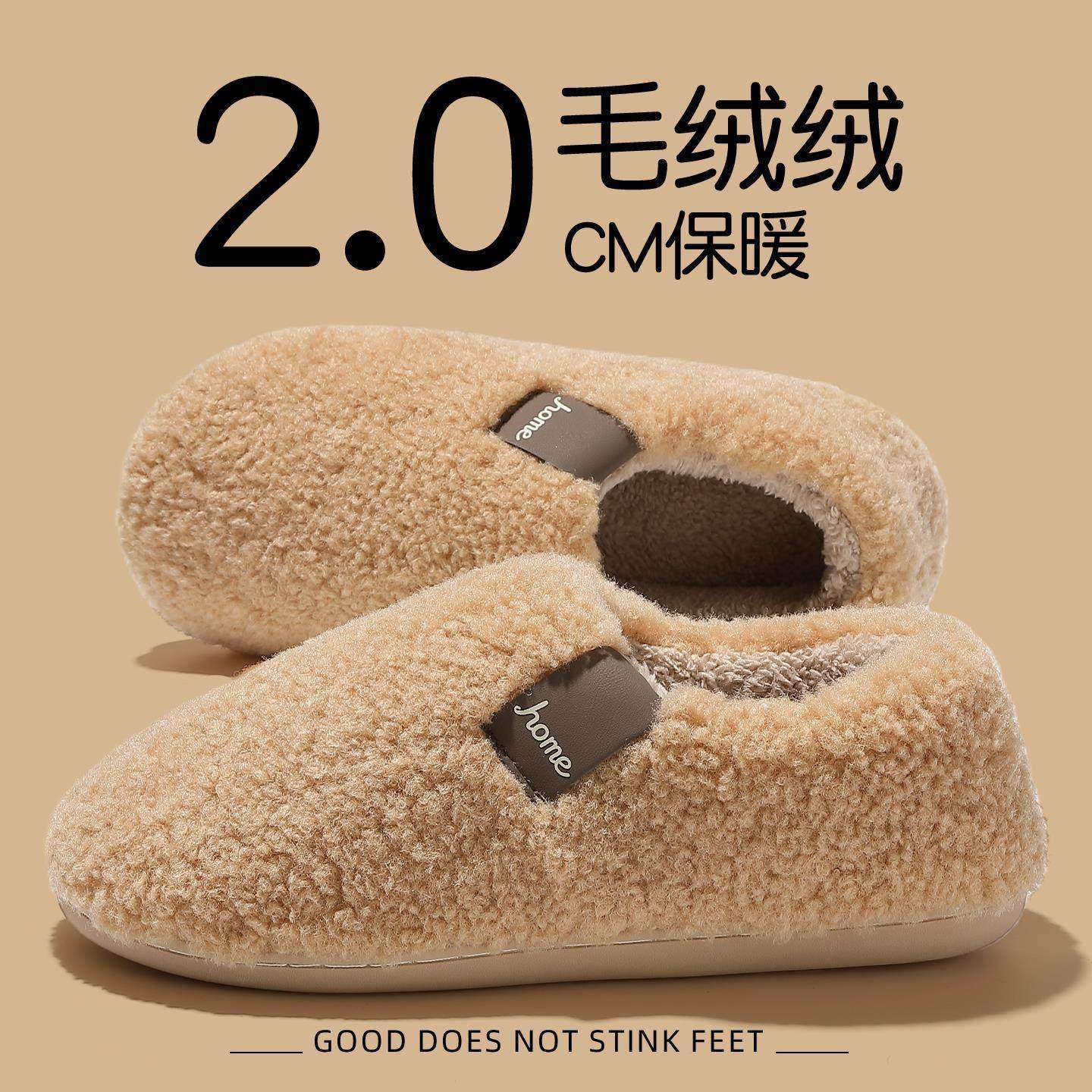 休闲居家毛绒防寒保暖拖鞋女款包跟厚底保暖防寒居家加绒拖鞋男士