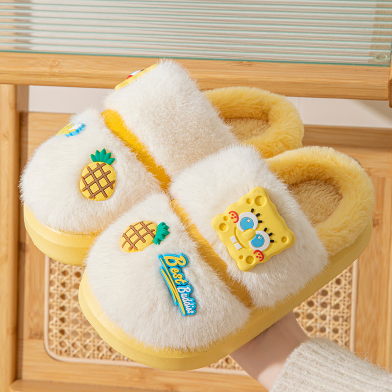 保暖踩屎感情侣亲子棉鞋海绵宝宝棉拖鞋女秋冬季新款室内家居加绒