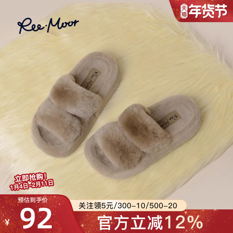 reemoor2025秋季新款复古厚底女毛毛拖鞋外穿舒适保暖休闲睿慕