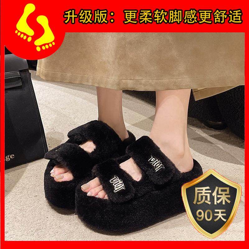 推荐网红毛茸茸棉拖鞋女外穿2025新款秋冬季增高厚底超火加绒毛毛