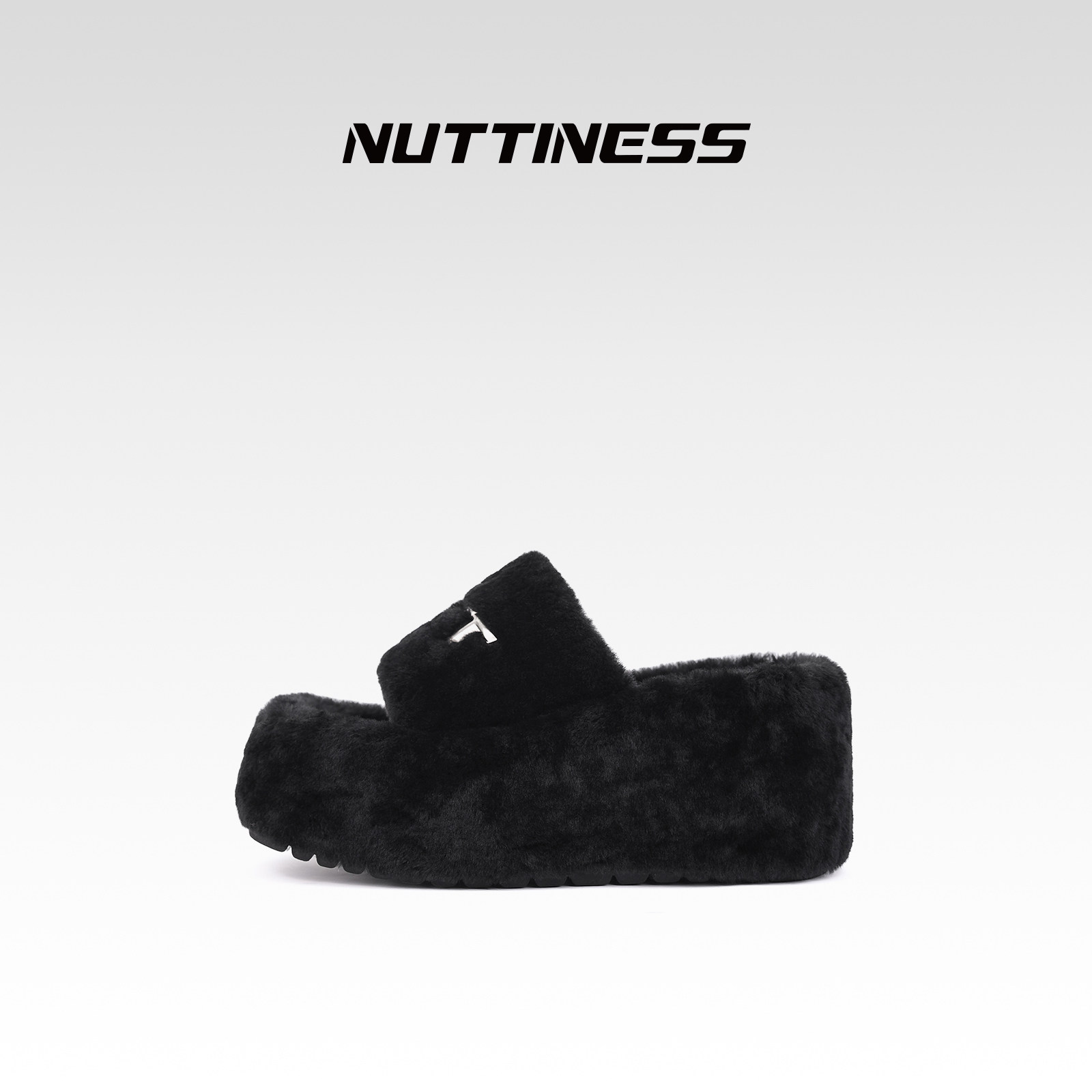 fed外穿毛毛鞋冬季新款女鞋毛茸茸一字拖厚底拖鞋女D1017-YAB681