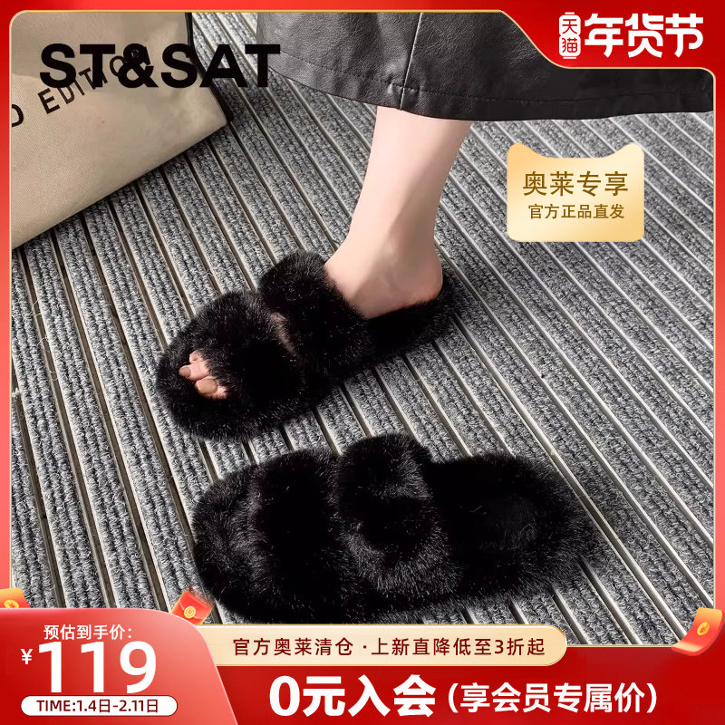 星期六秋冬季毛毛拖鞋女外穿网红爆款加绒保暖时尚厚底一字拖