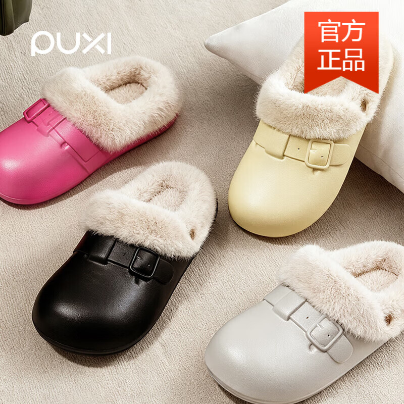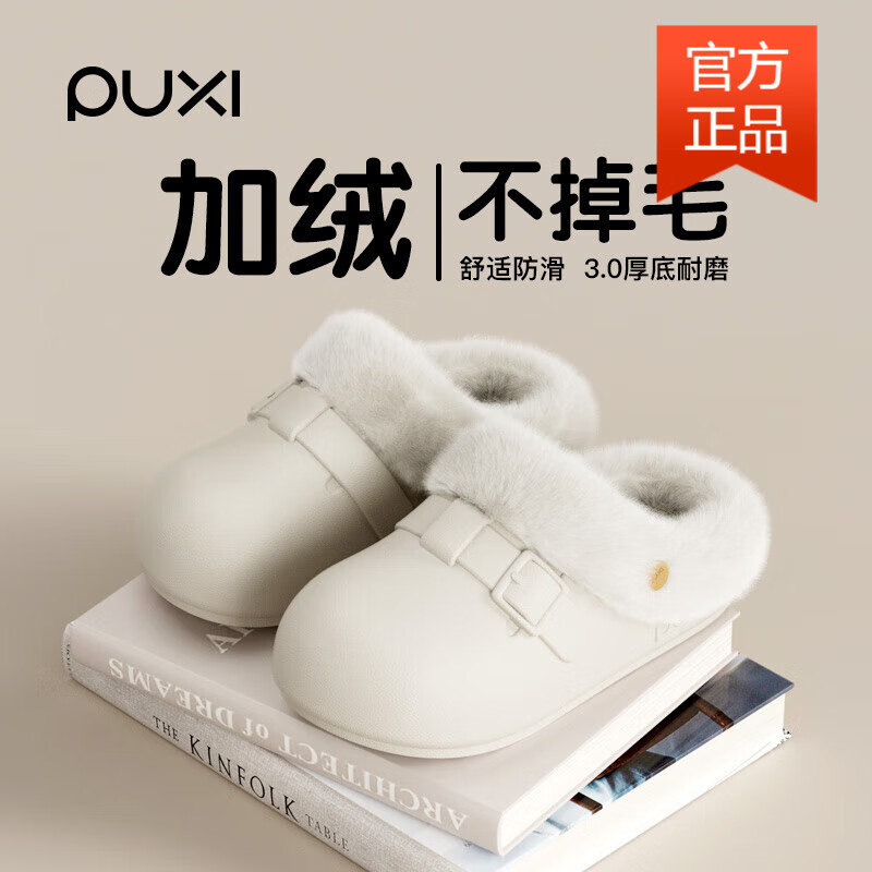 朴西2025时尚新款博肯棉拖鞋女厚底软弹保暖加绒防滑防水棉拖鞋情侣款 浅沙色 【防污耐脏】 38-39 【适合37-38】
