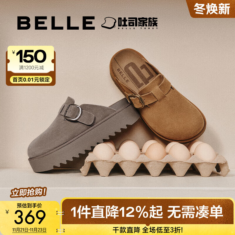 百丽(Belle)方枪枪同款厚切吐司勃肯女拖鞋包头棉鞋D1P1DAH5 棕色-单里 36 (230mm)