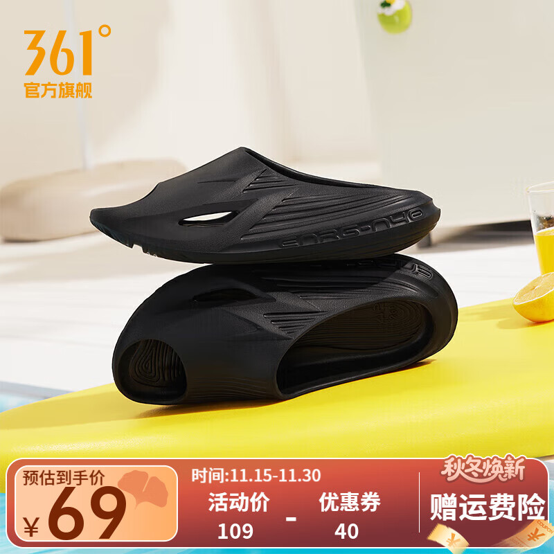 361°361度【BIG3 】运动拖鞋男春夏新款家居户外凉拖鞋厚底沙滩软底拖 曜石黑 41