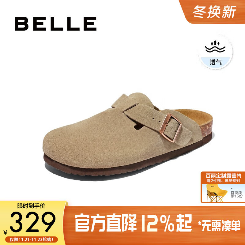 百丽休闲厚底增高勃肯鞋男包头外穿半拖鞋B3731BH5 杏色 38