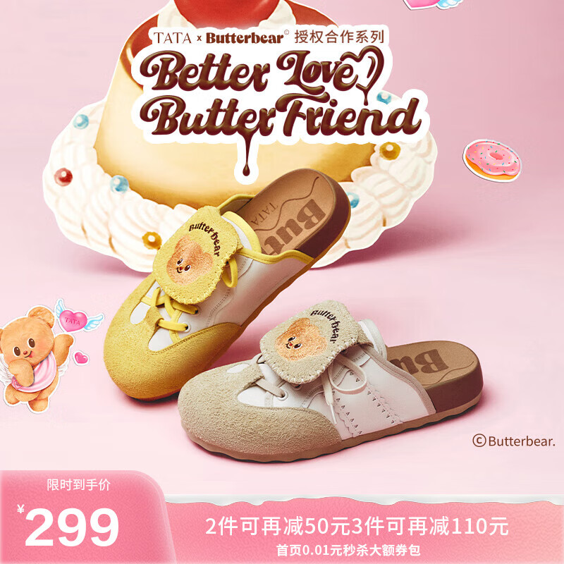 他她(TATA)徐若晗同款黄油小熊联名厚底勃肯鞋女包头拖鞋子4SZ01BH5 米白/杏 37