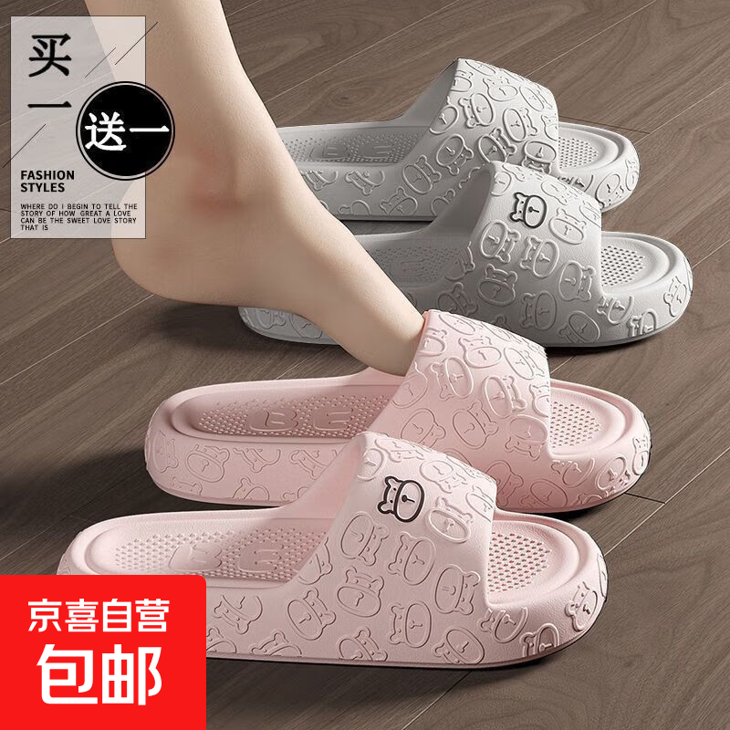 买一送一德国eva防臭拖鞋男款夏季爆款居家浴室防滑情侣凉拖女士 粉色+灰色【2双-EVA无菌级防滑】 组合装 38-39码+42-43