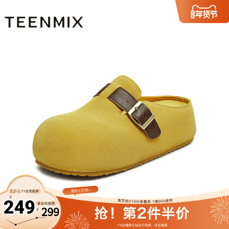 天美意2025秋新款纯色厚底百搭一脚蹬半拖鞋女勃肯鞋KK059CH5
