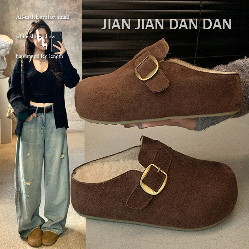 厚底内增高加绒勃肯鞋包头拖鞋女外穿2025新款秋冬毛毛棉拖鞋