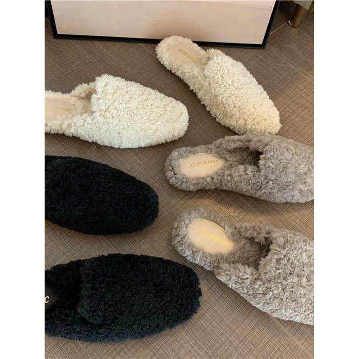 潮牌加绒毛毛鞋外穿秋冬季新款韩版超chic羊羔毛百搭厚实半拖鞋女