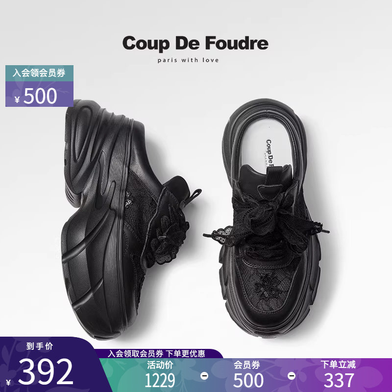 CDF女鞋2025夏季新款百搭真皮厚底增高拖鞋蕾丝拼接透气休闲鞋女