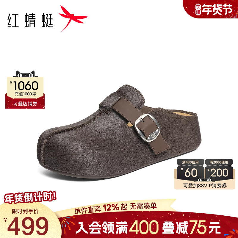 红蜻蜓勃肯拖鞋2026春季新款男鞋一脚蹬休闲鞋男士软底舒适外穿鞋