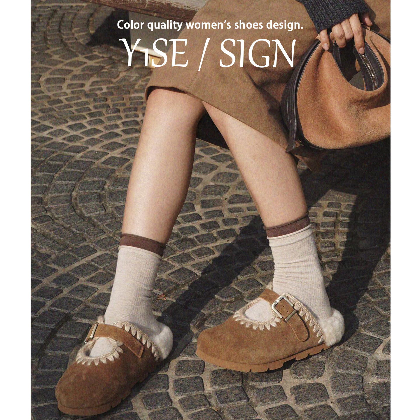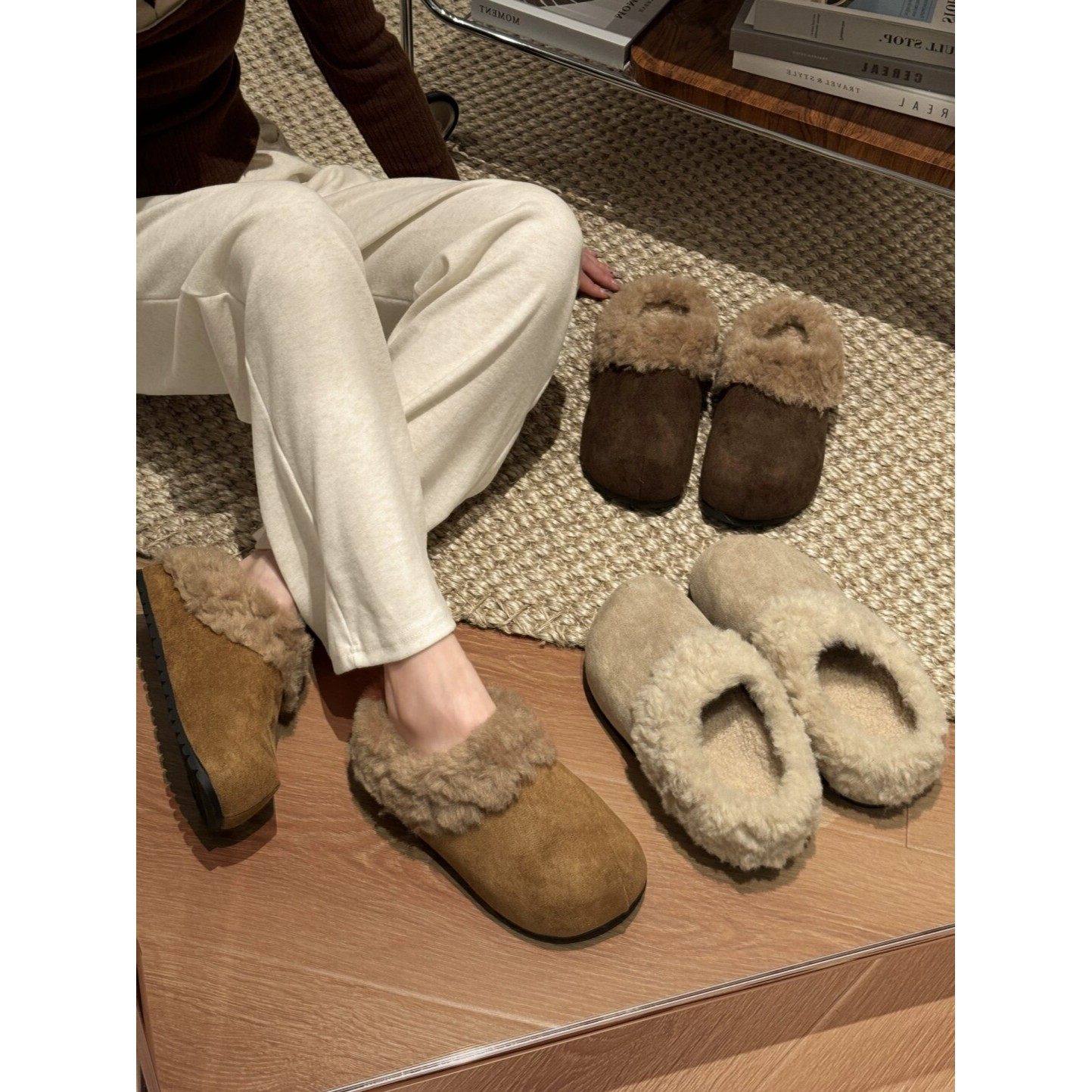 everly shoes两穿款复古保暖厚底毛毛拖鞋女秋冬加绒勃肯鞋棉鞋