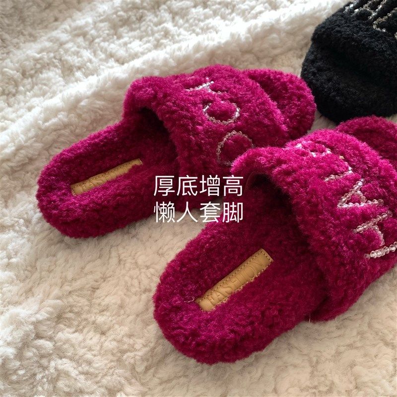 洛羽服装旗舰厚底棉拖外穿棉拖鞋秋冬季舒适保暖加绒毛毛增高女鞋