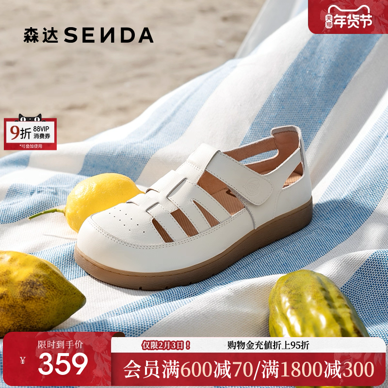 达人同款森达勃肯云朵可可猪笼鞋女休闲罗马凉鞋洞洞鞋包头凉拖鞋