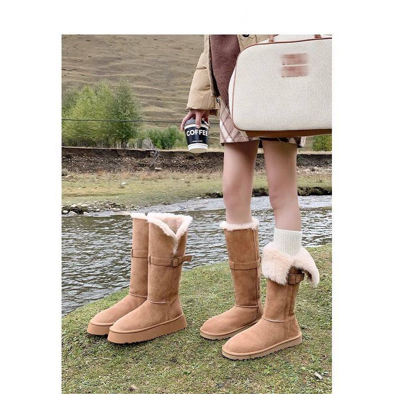 两穿棕色厚底毛毛高筒长靴2025冬季加绒中筒棉鞋保暖东北雪地靴女