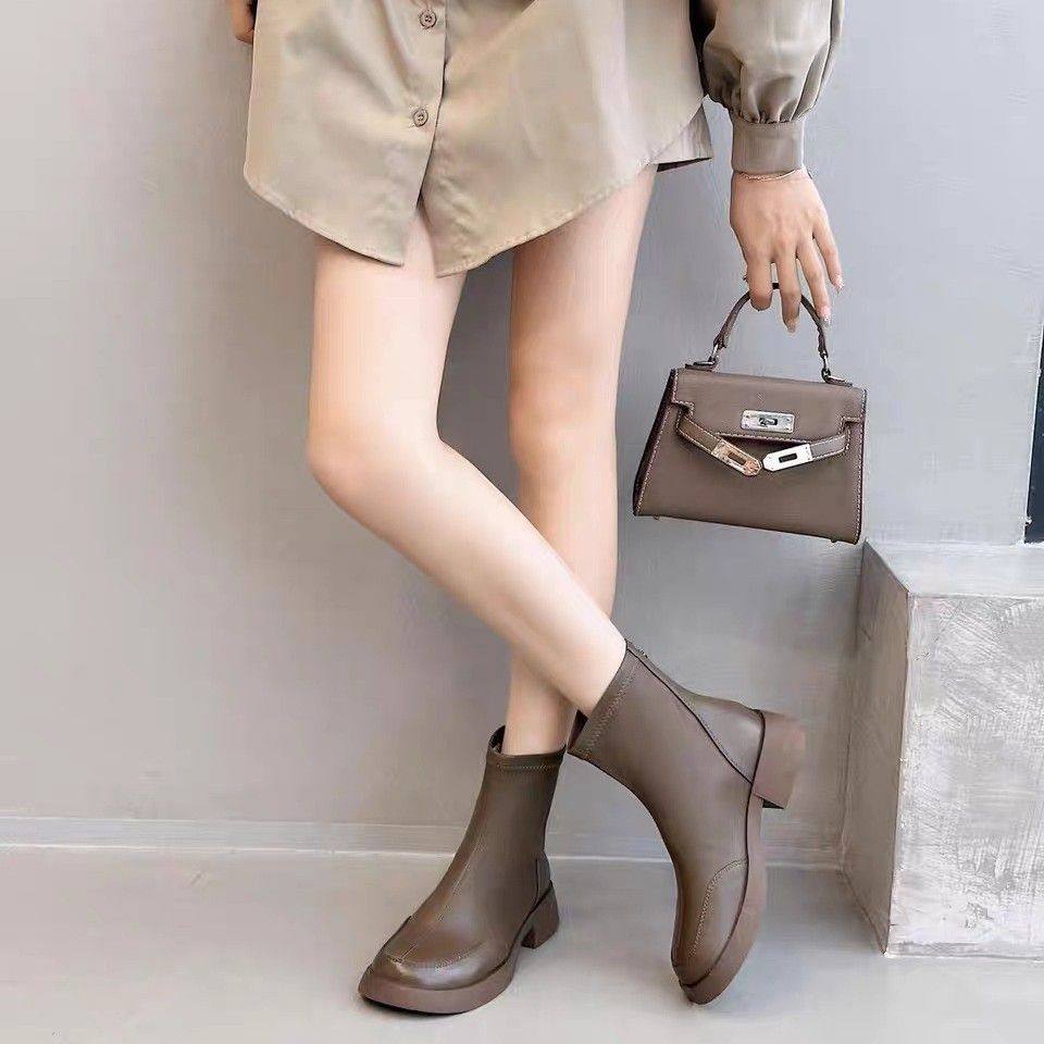 英伦风复古时装靴女秋冬季2025新款鞋加绒短靴百搭厚底弹力时装靴