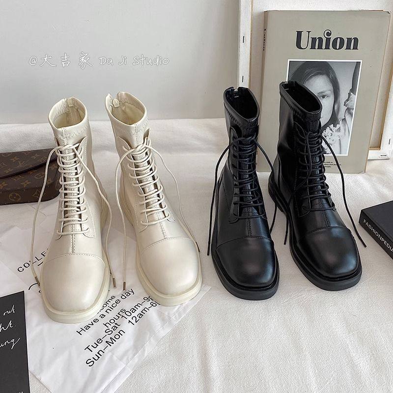 时装靴女秋冬新款时尚英伦风软底百搭弹力廋廋靴平底复古马丁靴女