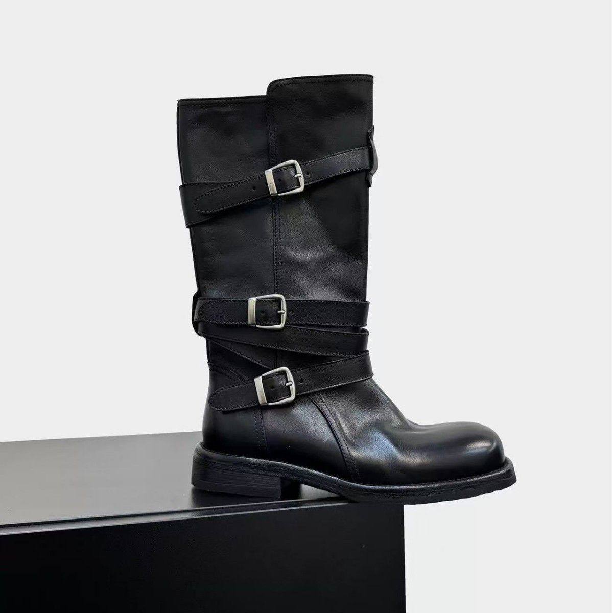 2025秋冬新款复古圆头黑色厚底英伦风马丁靴女圆头粗跟中筒时装靴