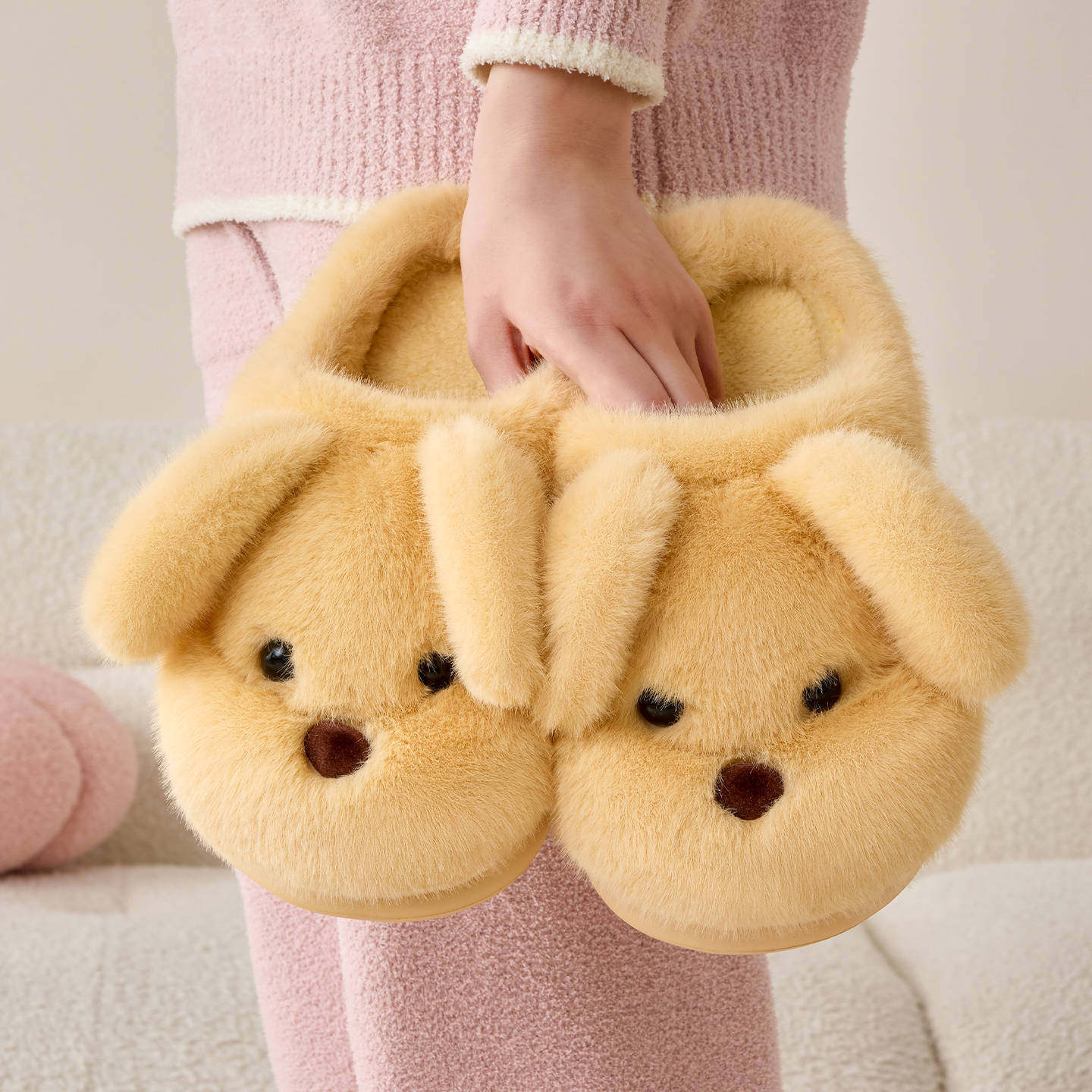 亚束迈舒加绒棉拖鞋女士秋冬居家室内保暖防滑棉拖防泼水皮面耐脏
