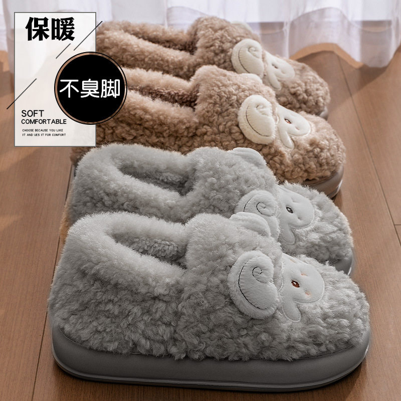 踩屎感棉拖鞋男款冬季外穿2025新款保暖加绒加厚卡通包跟棉鞋女士