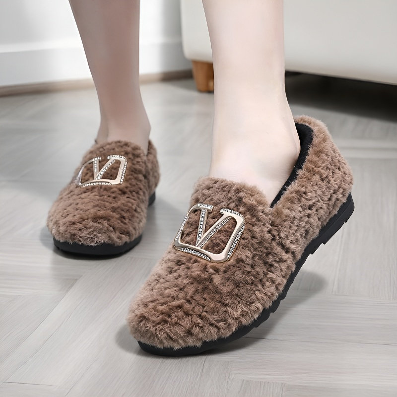 加绒毛毛棉鞋鞋女冬外穿百搭平底豆豆鞋懒人鞋保暖包根棉拖鞋外穿