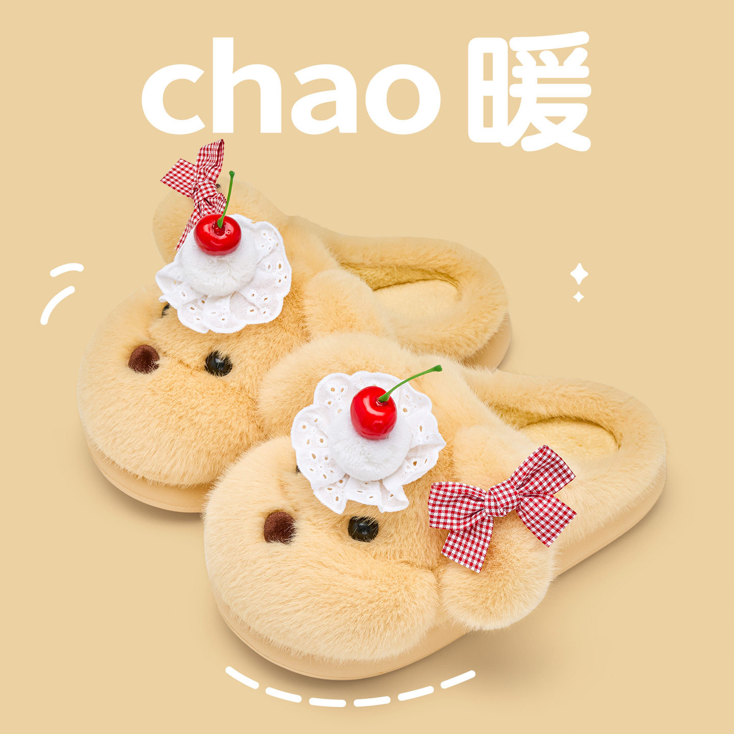 可爱卡通雪莉玫棉鞋女2024冬季新款外穿厚底加绒保暖魔术贴棉拖鞋