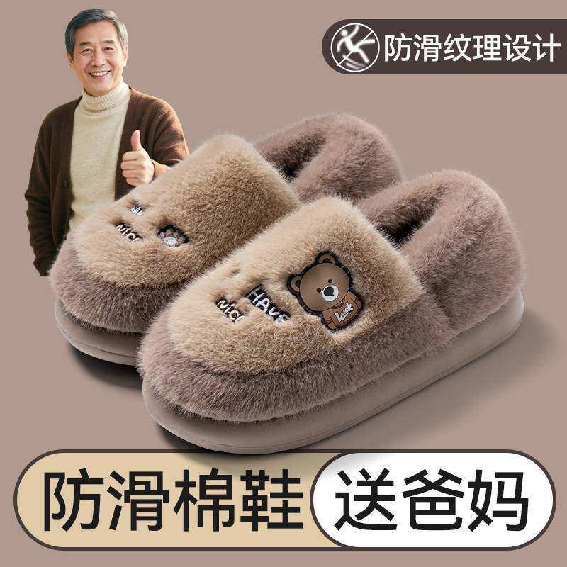 老人包跟棉拖鞋男士冬季2025新款外穿厚底保暖防滑加绒毛毛棉鞋男