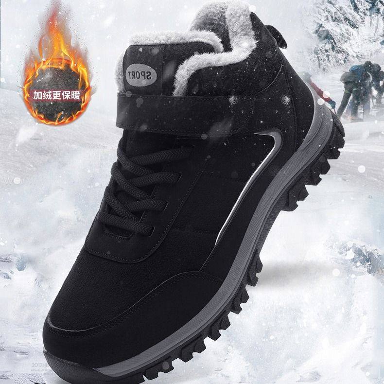 冬季雪地靴加绒保暖棉鞋男中筒棉靴防滑耐磨登山鞋男士加厚户外鞋