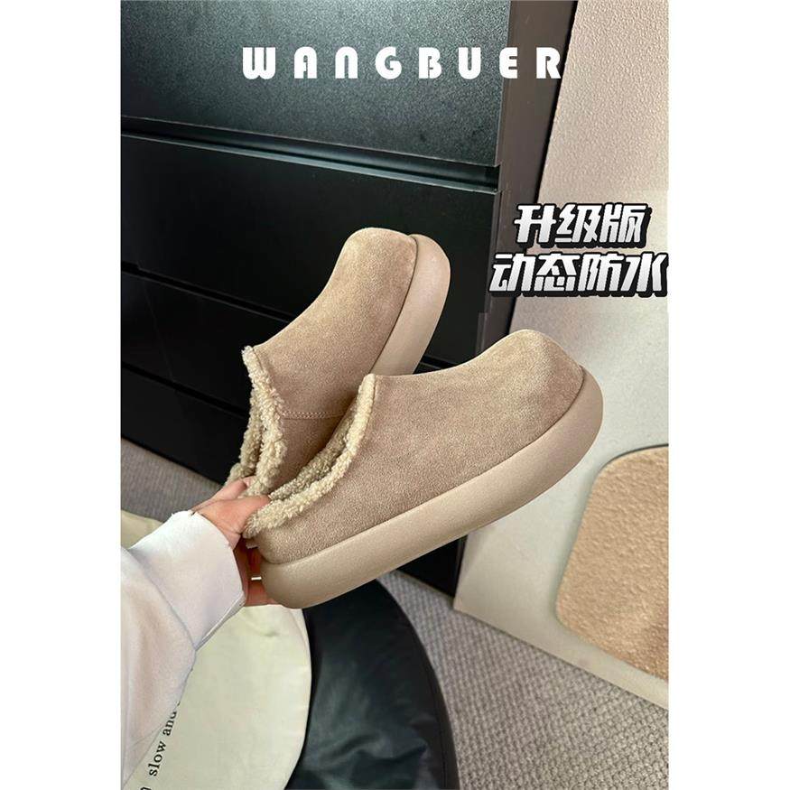 防水版厚底小土豆雪地靴女羊毛包头拖鞋加绒勃肯防滑一脚蹬雪地靴