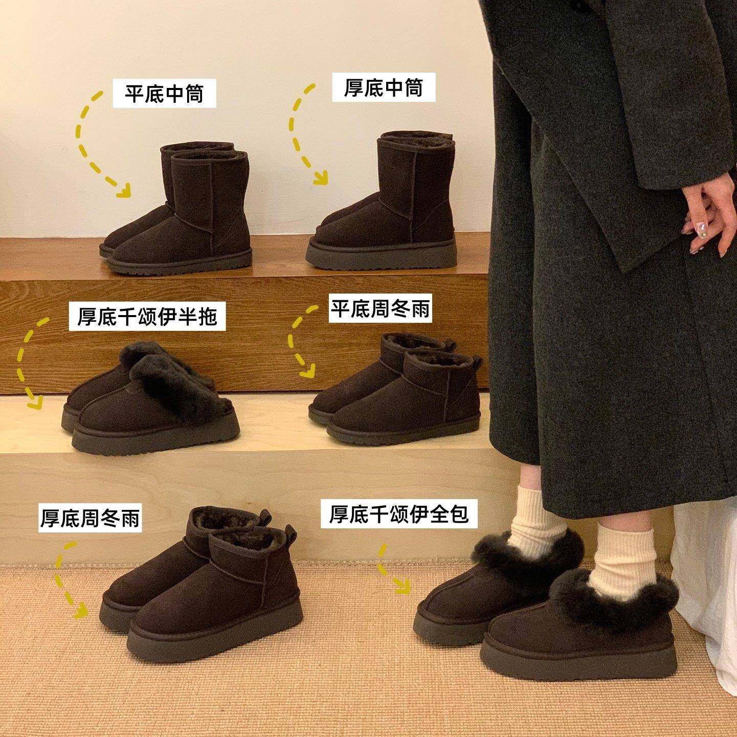 香港咖啡色厚底雪地靴女2025新款冬增高中筒短靴毛毛拖鞋加绒棉鞋