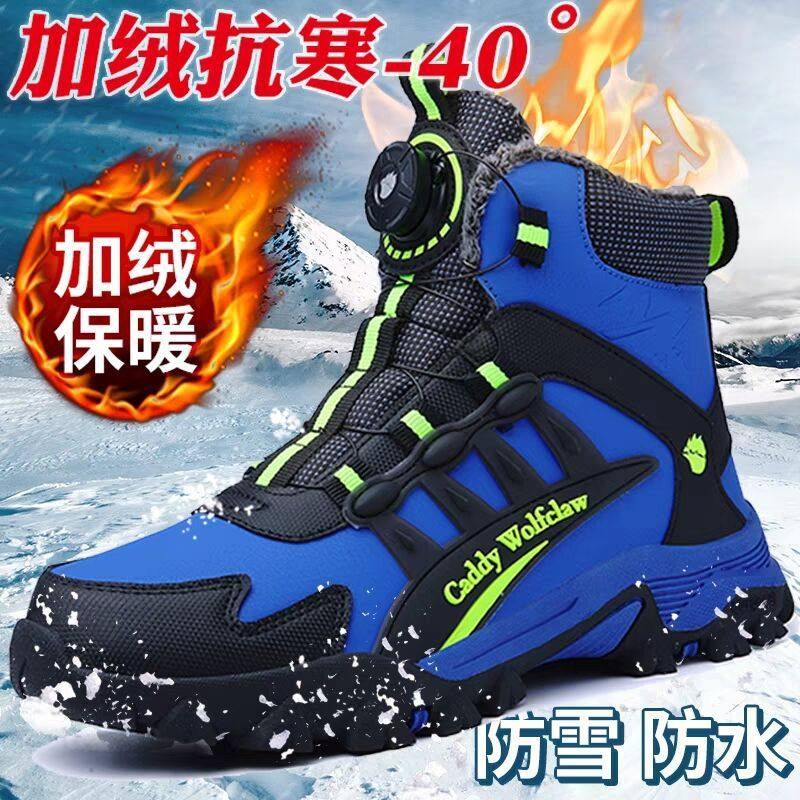 冬季男鞋中大童旋转纽扣棉鞋男加绒保暖加厚雪地靴男孩学生运动鞋
