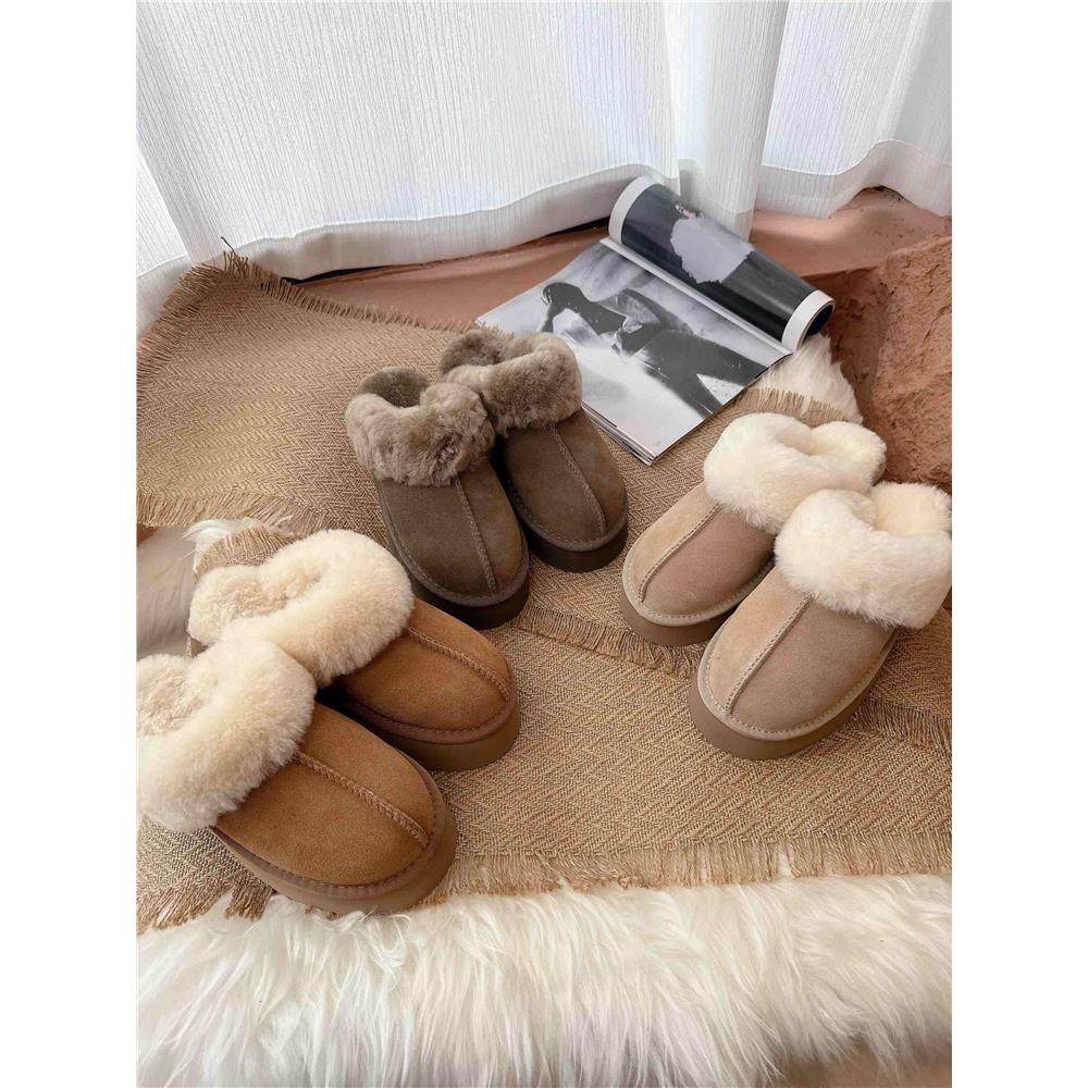 2025秋冬新款雪地靴拖鞋星拖羊皮毛一体外穿厚底增高冬季棉鞋桑坡