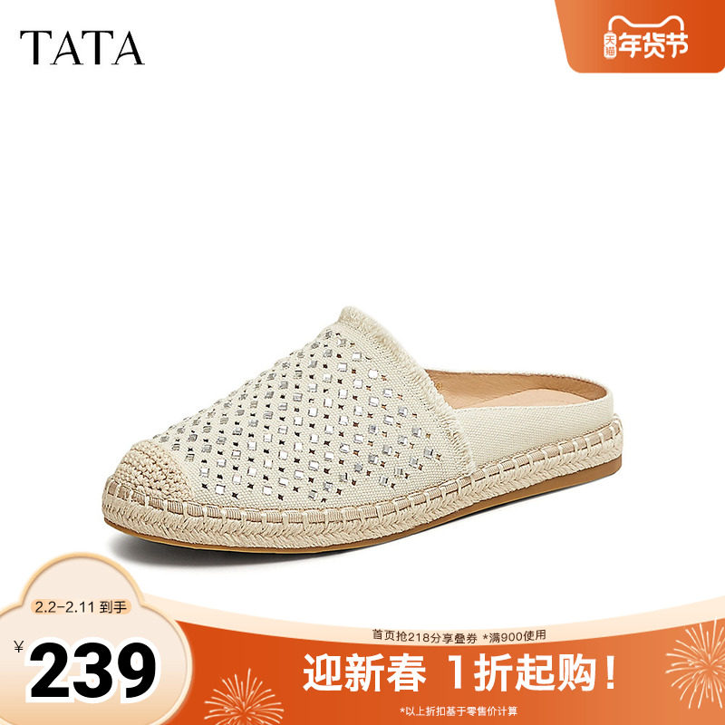 TATA他她小香风气质渔夫鞋女鞋平底外穿包头拖鞋2025秋新CT602AH5