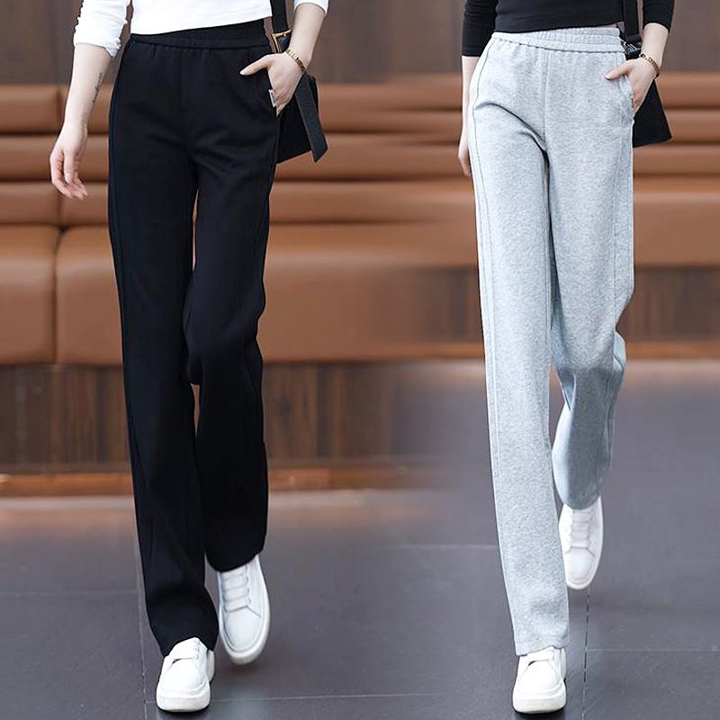 灰色显瘦窄版裤女年春夏款高腰直筒显瘦休闲裤运动小个子卫裤