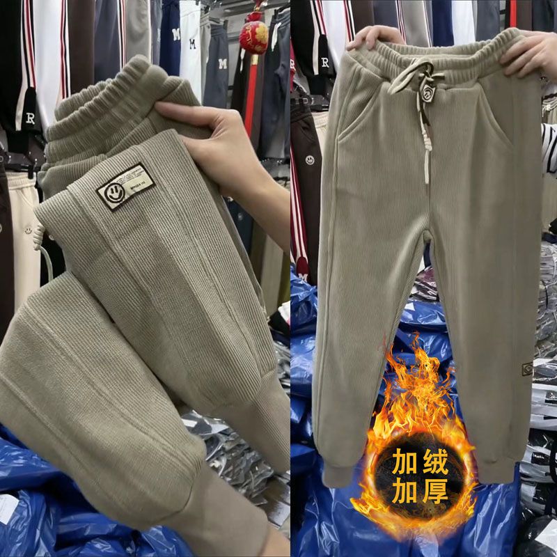 运动裤女秋冬新款冬季加绒休闲卫裤束脚重工宽松显瘦潮