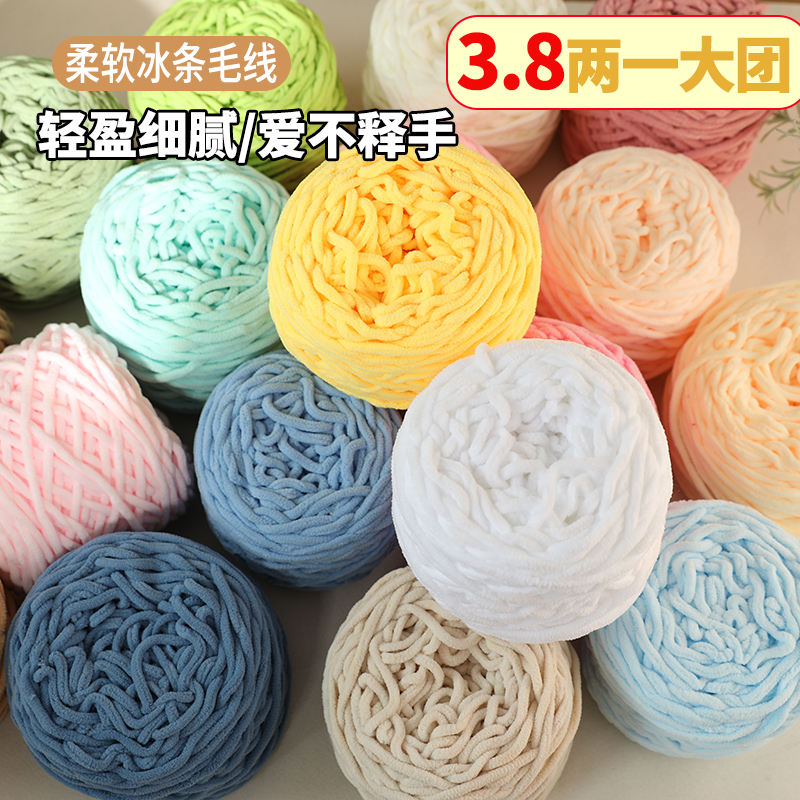 3.8两大团冰条线粗毛线手工编织diy材料勾拖鞋坐垫围巾玩偶多巴胺