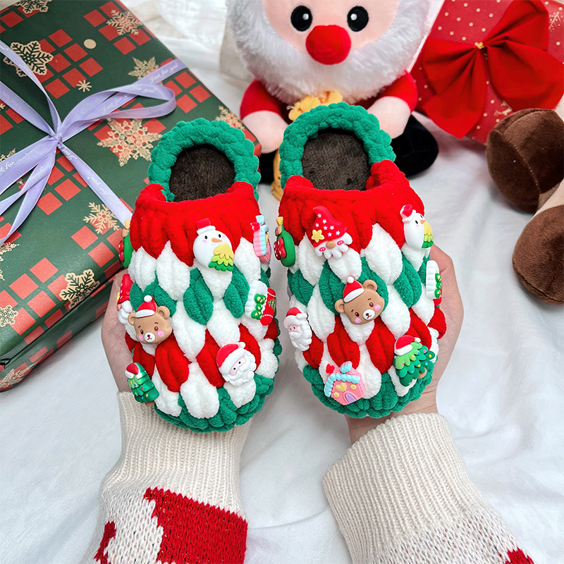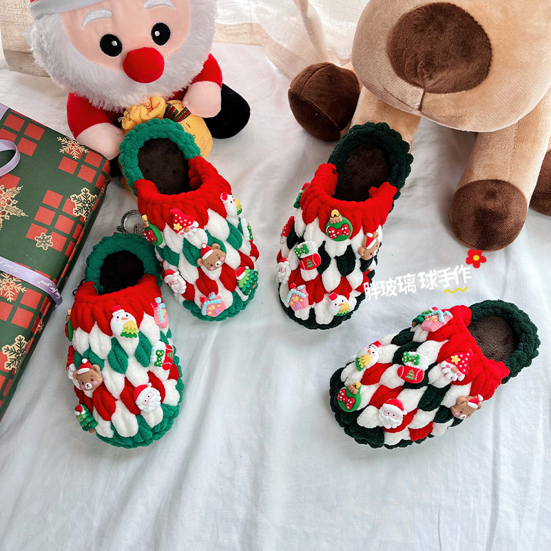 胖玻璃球手作儿童手工编织钩针自织圣诞拖鞋粗冰条毛线diy材料包