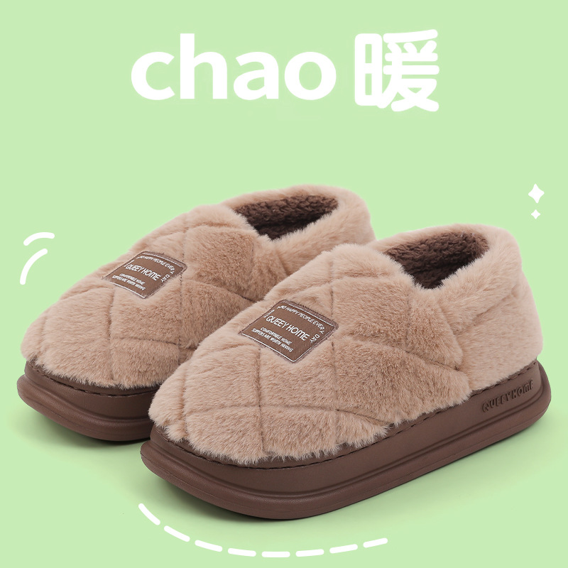 秋冬新款时尚ins风情侣棉拖鞋女保暖居家用可爱毛绒棉拖鞋男