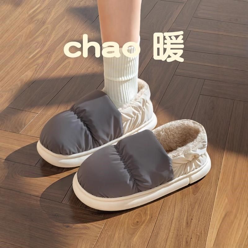 男士羽绒棉拖鞋男款冬季包跟居家居加绒保暖防水大码毛棉鞋女冬天