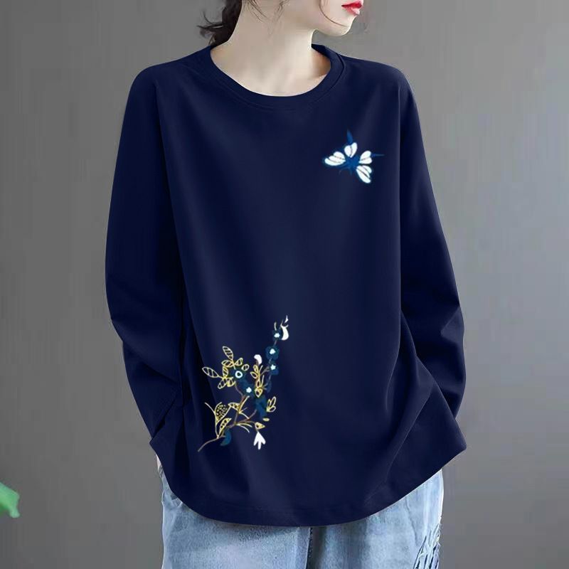 宽松打底体恤上衣国潮t恤女纯棉长袖春秋新款设计感小众