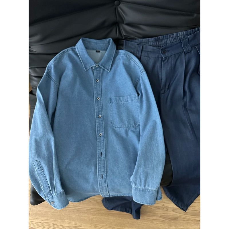牛仔衬衫男长袖韩版潮流高级感男装工装衬衣宽松日系秋季休闲外套