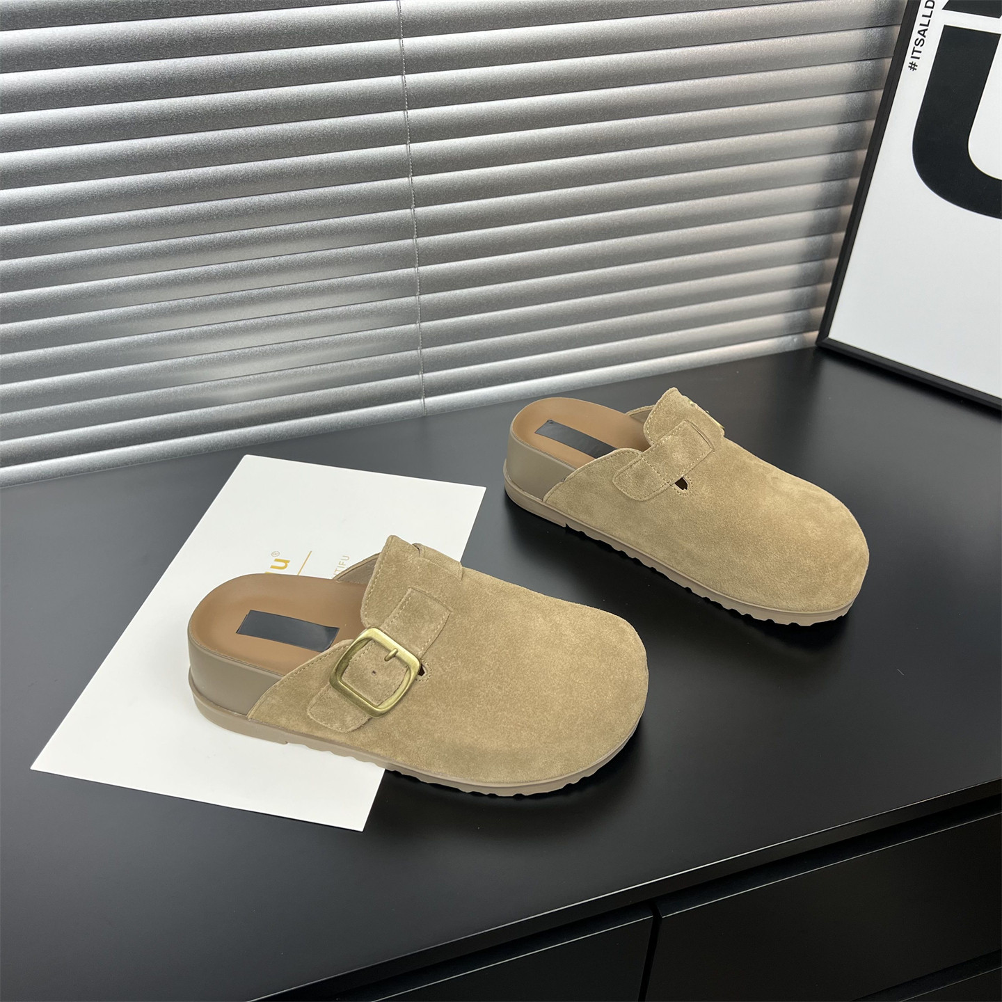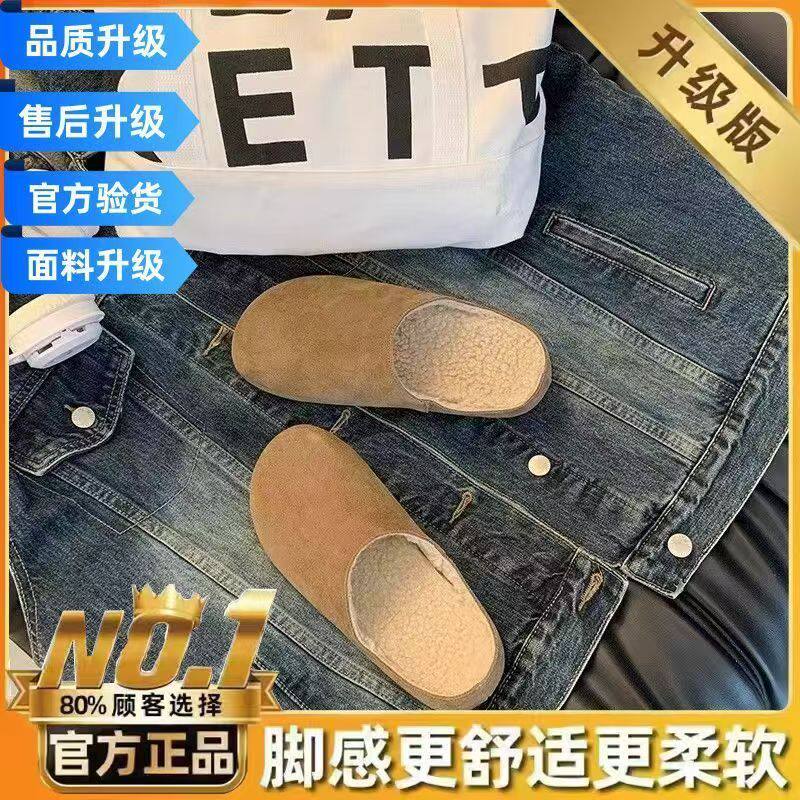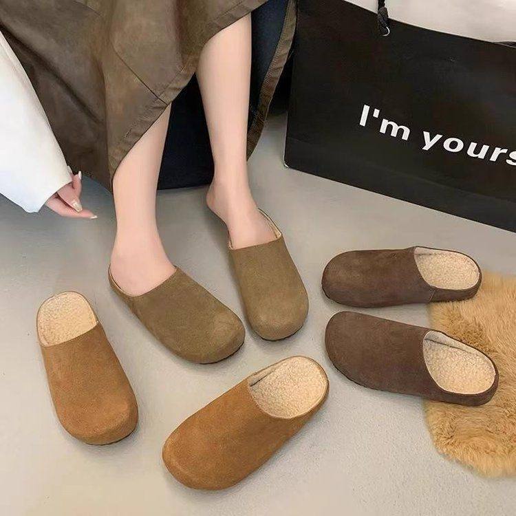 女士秋冬加绒保暖平底包头半拖鞋居家室内外穿新款博肯鞋