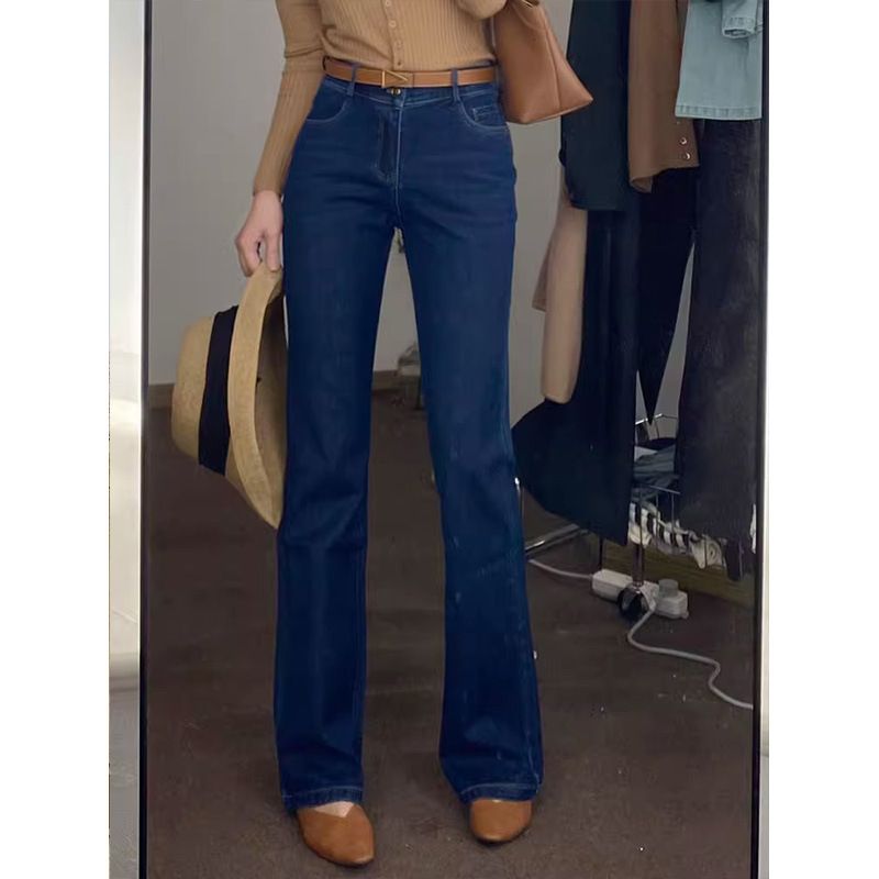 美式辣妹蓝色高腰微喇叭牛仔裤女2025秋季窄版显瘦直筒马蹄长裤子