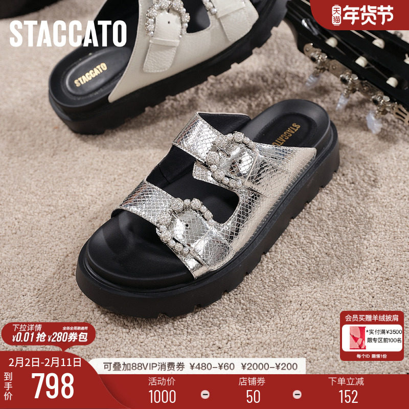 St&Sat/星期六春秋牛反绒勃肯鞋厚底增高包头半拖鞋女SSD2110CPE