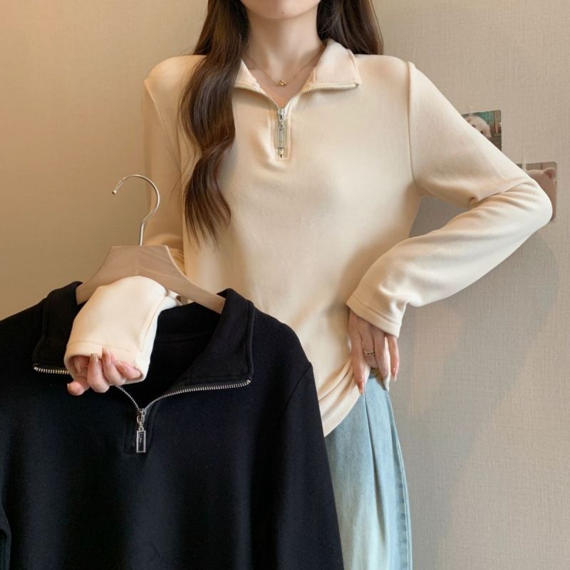 大码加厚德绒拉链打底衫女秋冬季新款宽松显瘦加绒保暖长袖上衣女