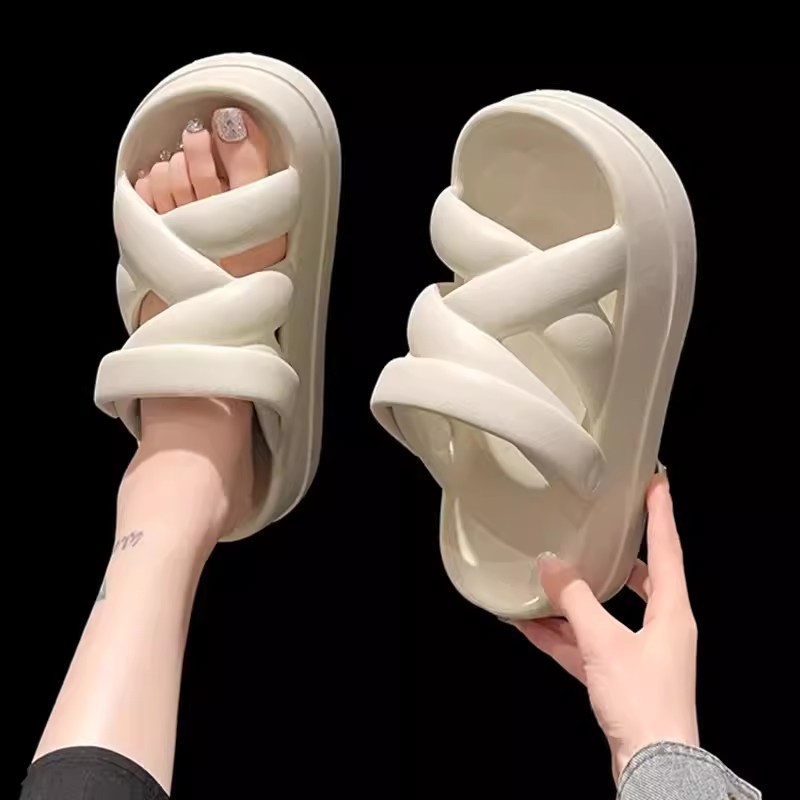 香香莉软底凉拖鞋女夏2025新款外穿平底一脚蹬露趾罗马凉鞋030385
