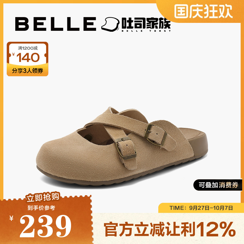 百丽女鞋子吐司拖慵懒舒适软底室内外穿一脚蹬勃肯凉拖鞋B2106CH4