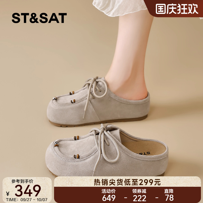 星期六外穿包头拖鞋女2025秋季新款厚底半拖勃肯鞋复古一脚蹬单鞋